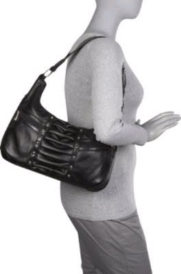 Die Kombination aus gebürstetem Nickel Hardware und helle Akzent auf schwarzem Leder